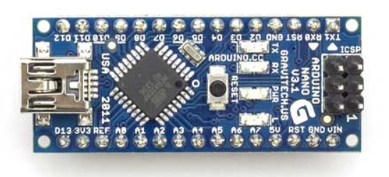 บอร์ด Arduino Nano ออกแบบมาให้มีขนาดเล็ก และใช้กับงานทั่วๆไป ใช้ชิปไอซีไมโครคอนโทรเลอร์เบอร์ ATmega168 หรือเบอร์ ATmega328 (มีรุ่น 2.3 กับ 3 ตอนซื้อต้องเช็คดีๆก่อน) โปรแกรมผ่านโปรโตคอล UART มีชิปUSB to UART มาให้ ใช้ Mini USB เชื่อมต่อกับคอมพิวเตอร์ มีพอร์ตดิจิตอลอินพุตเอาต์พุต 14 พอร์ต มีพอร์ตอนาล็อกอินพุต 8 พอร์ต บนบอร์ดยังมีเรกกูเลเตอร์ สามารถจ่ายไฟได้ตั้งแต่ 7 – 12V เพื่อให้บอร์ดทำงานได้ (จ่ายไฟที่ขา VIN)กรณีมีแหล่งจ่ายไฟ 5V อยู่แล้วก็จ่ายเข้าได้เลยที่ขา 5V